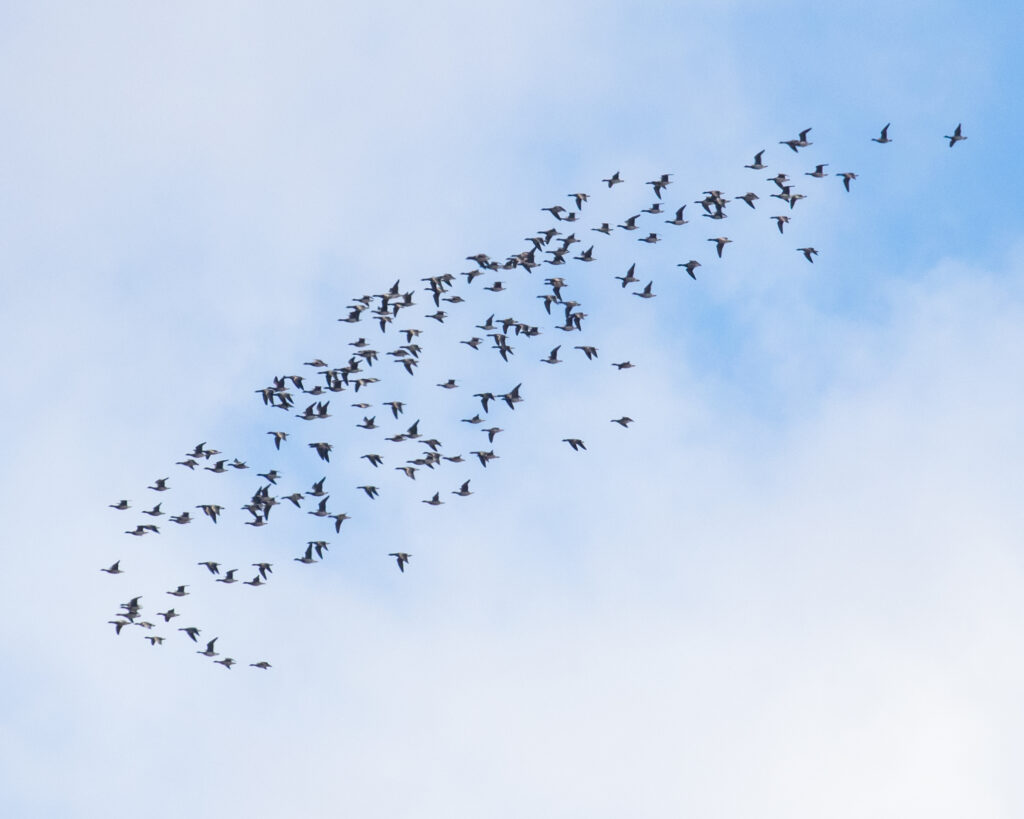In non-raptor news, it was extremely birdy on Saturday, especially in the morning. Purple Finches were a favorite for me, and I was finally able to get a halfway decent shot of one. On Sunday, I had several skeins of BRANT fly over; my first for that species in 2025.