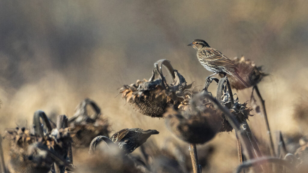 This morning I checked Wickham Lake and Glenmere Lake. There wasn’t much exciting going on at either lake, so I headed over to the Black Dirt Region, where I found my first Lapland Longspur, Snow Buntings, and Cackling Goose of the season. Other than that, I was just hoping to get some photos for the day – I finally got lucky with some American Pipits in the nice morning light, and I thought a flock of Red-winged Blackbirds in a field of dead sunflowers made for some interesting images.