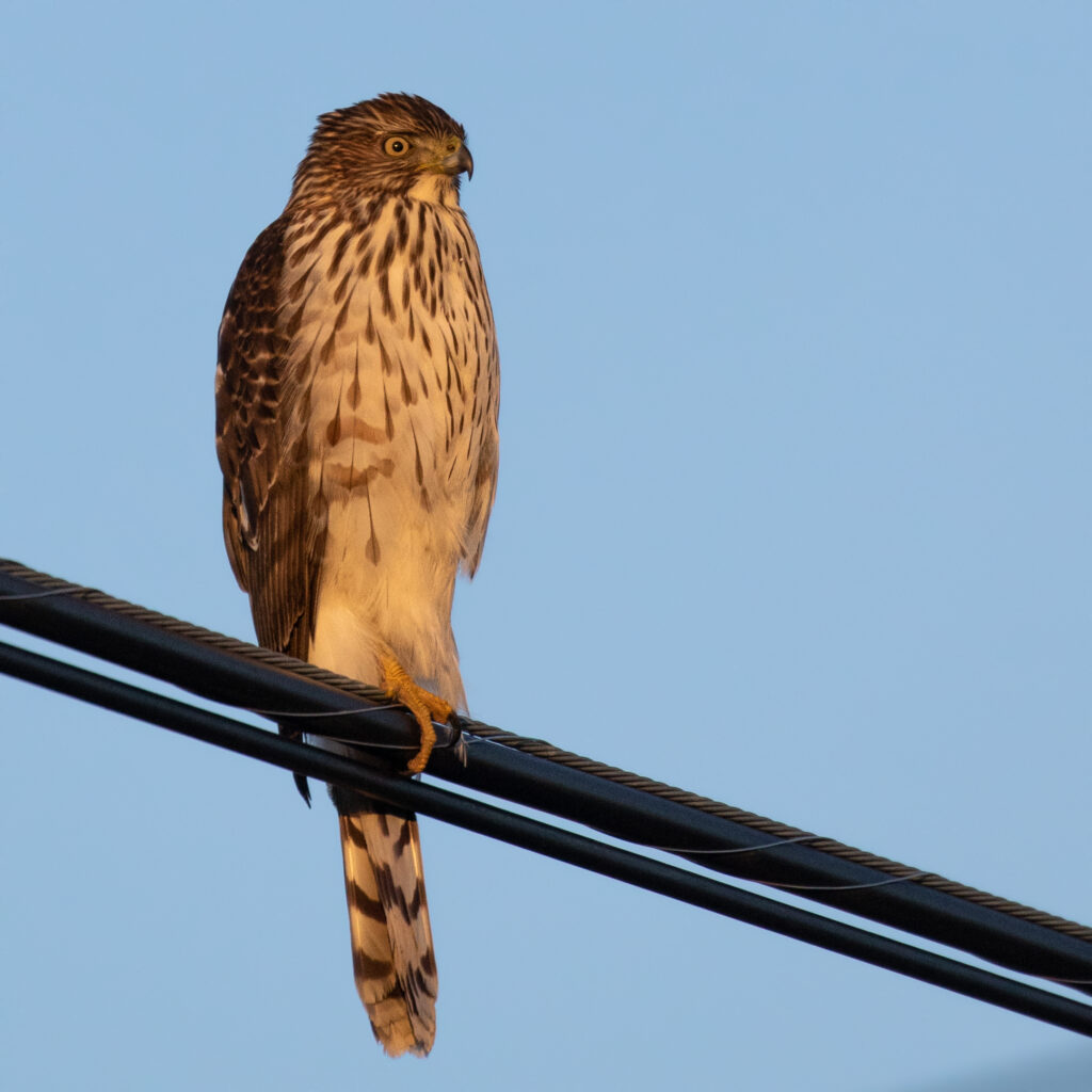 ~The bird of the day for sure, Red-tailed Hawk over Mount Peter, 11/01/25.~~Purple Finch at Mt. Peter Hawkwatch, 11/01/25.~~At the end of the day, when I was alone, these dudes flew over. My impression was that they were ducks – the wingbeat seemed too quick for Brant, but I’m not sure. Please comment if you have any idea what species this might be. I can’t remember seeing any duck species fly in a skein like this. ~One more shot of my mystery waterfowl. Mt. Peter Hawkwatch 11/01/25.~~This was my pre-hawkwatch highlight – Coyote at Wickham Woodlands Park, 11/01/25.~
