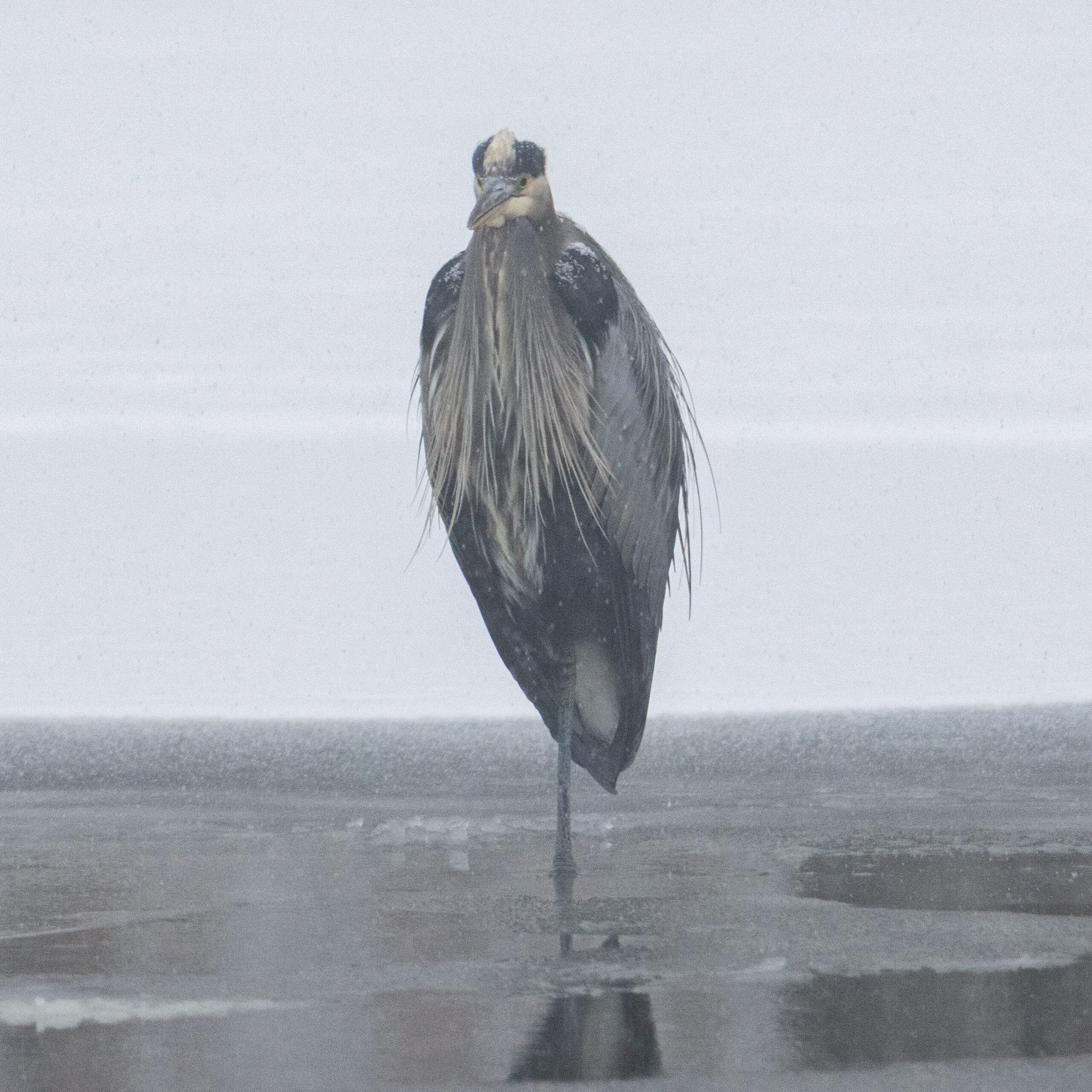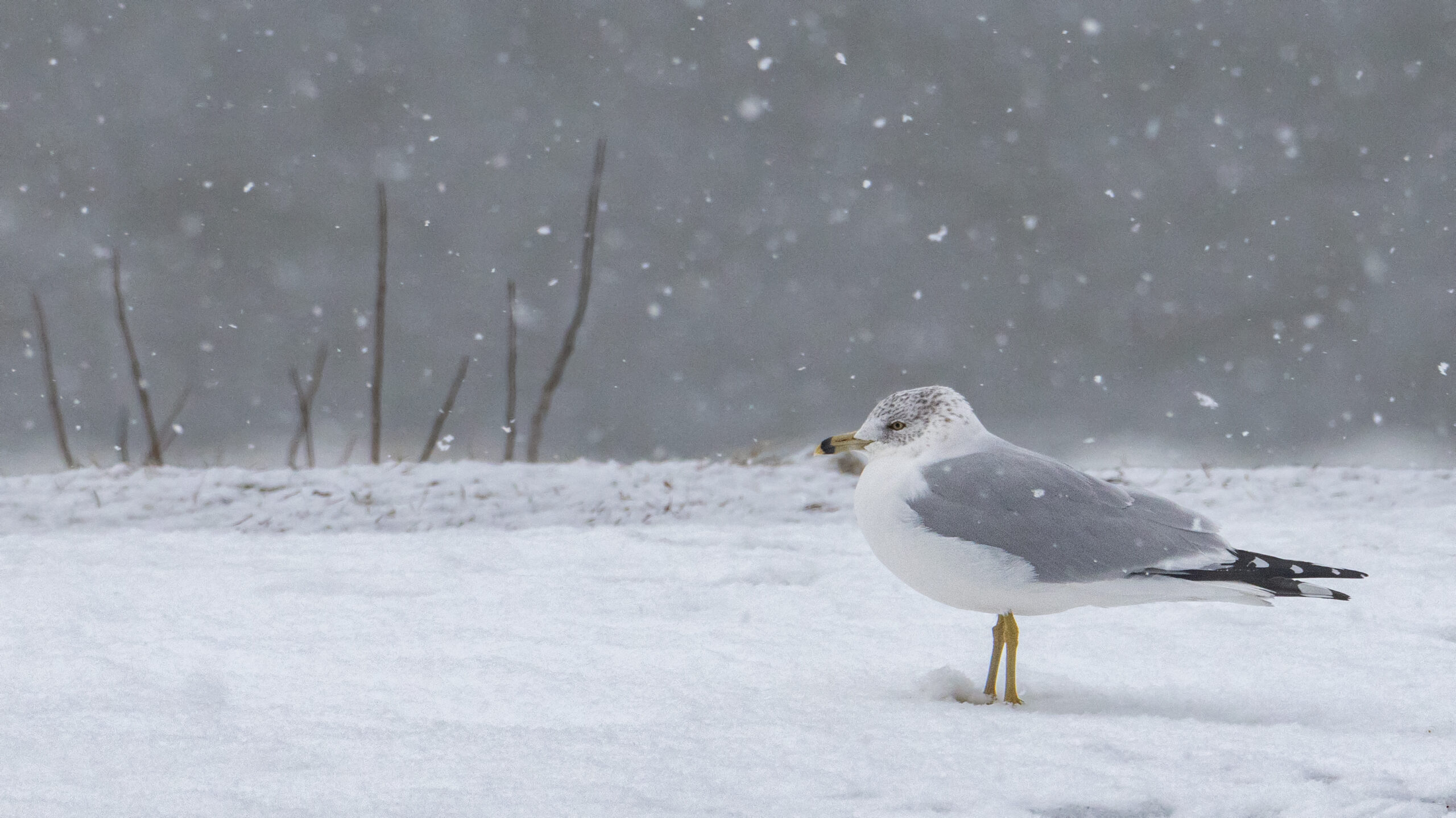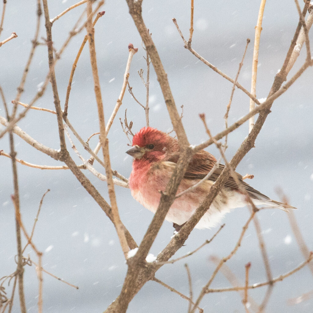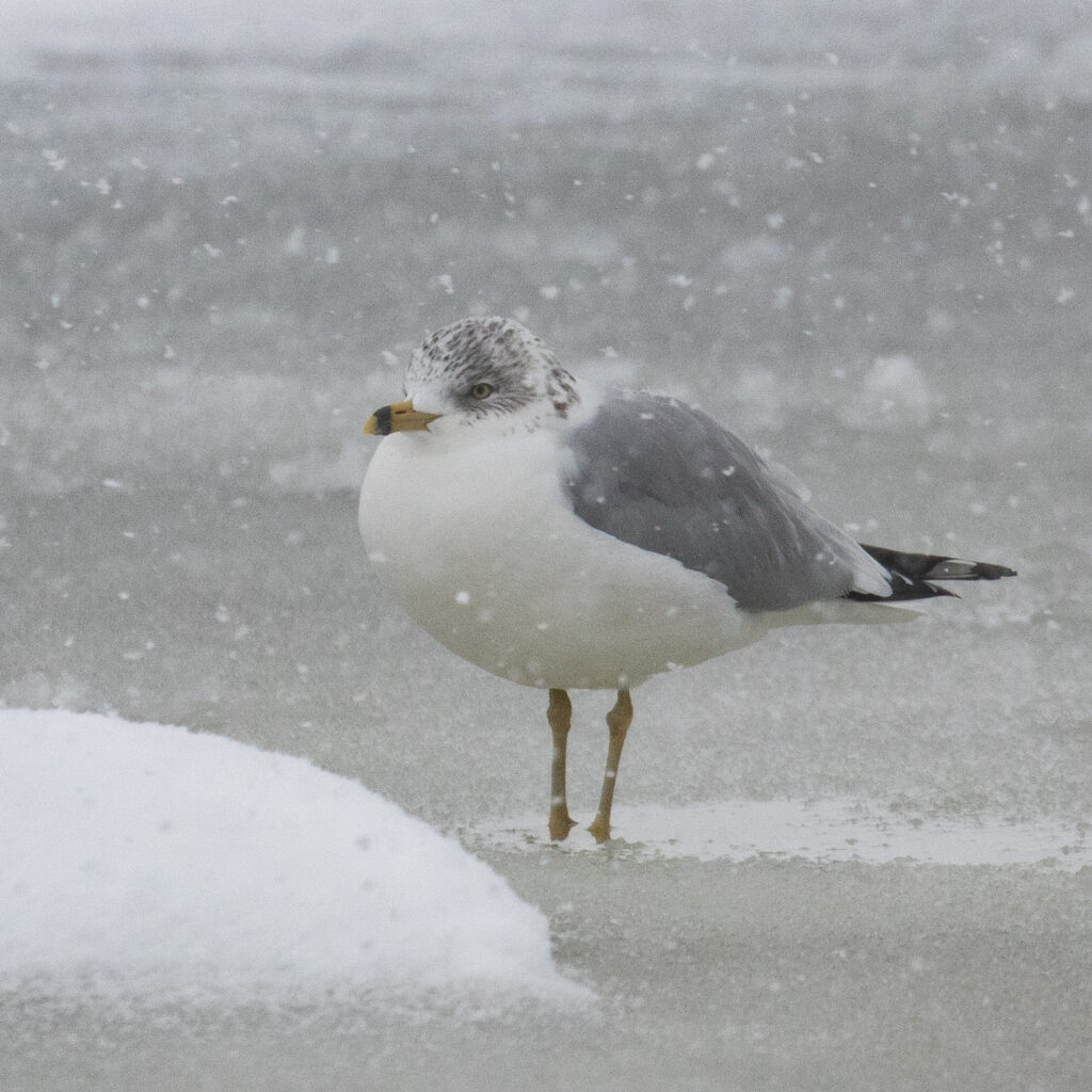 Well, it was certainly a snowy weekend, and I birded as the snow fell on both mornings. First thing Saturday morning I took a walk at Black Rock Forest. There is a feeder station there that was pretty active, particularly with modest sized flock of Purple Finches. Afterwards, I went to the Newburgh waterfront – visibility was terrible with the heavy snowfall, but it was still nice to be out and at the river – I was enjoying the different aesthetic of the day, where everything is just in shades of gray and white. I had only the three expected species of gulls in Newburgh, so I went over to Beacon, where I didn’t do any better, in fact I only had Ring-billed and American Herring Gulls.
