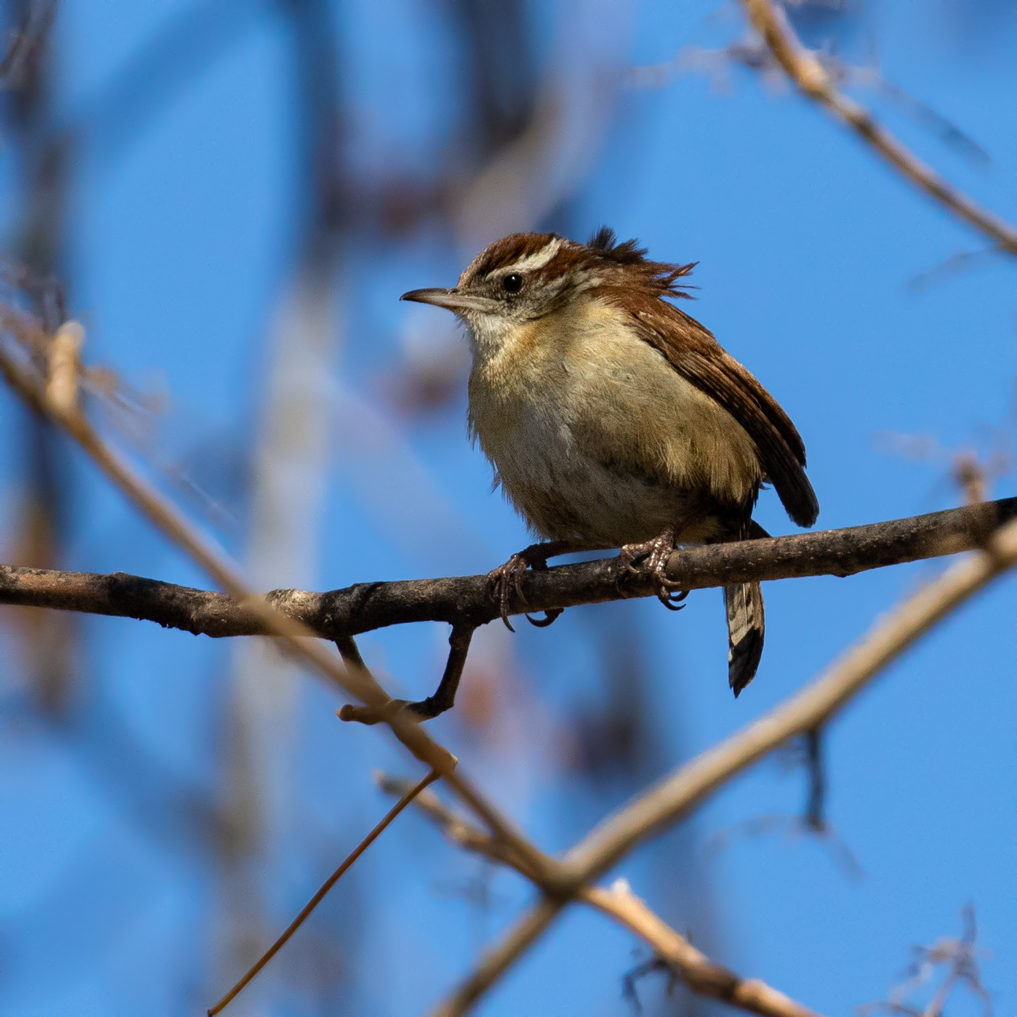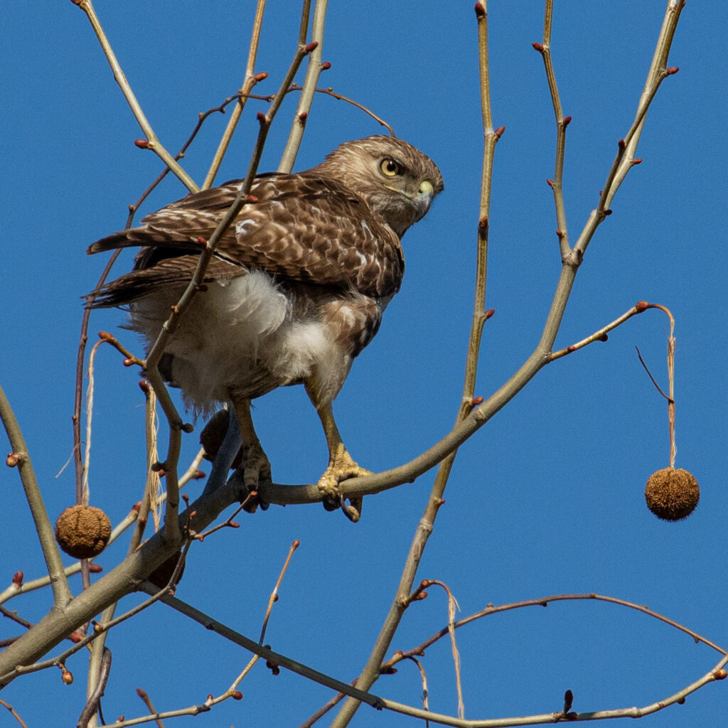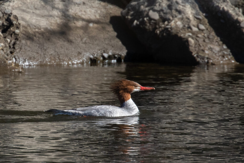 ~I was pleased to hear and see several Pine Warblers at Middletown Reservoir Trails this morning. It’s a start!~~Carolina Wren is a bird that is absolutely everywhere, but somehow I never seem to get any photos. I got this one on Saturday 04/11/26 at the Newburgh Waterfront Trail.~~A young Red-tailed Hawk at the Newburgh Waterfront Trail, 04/11/26.~~Tree Swallow at Wickham Lake, 04/11/26.~~Female Common Merganser at the Newburgh Waterfront, 04/11/26.~